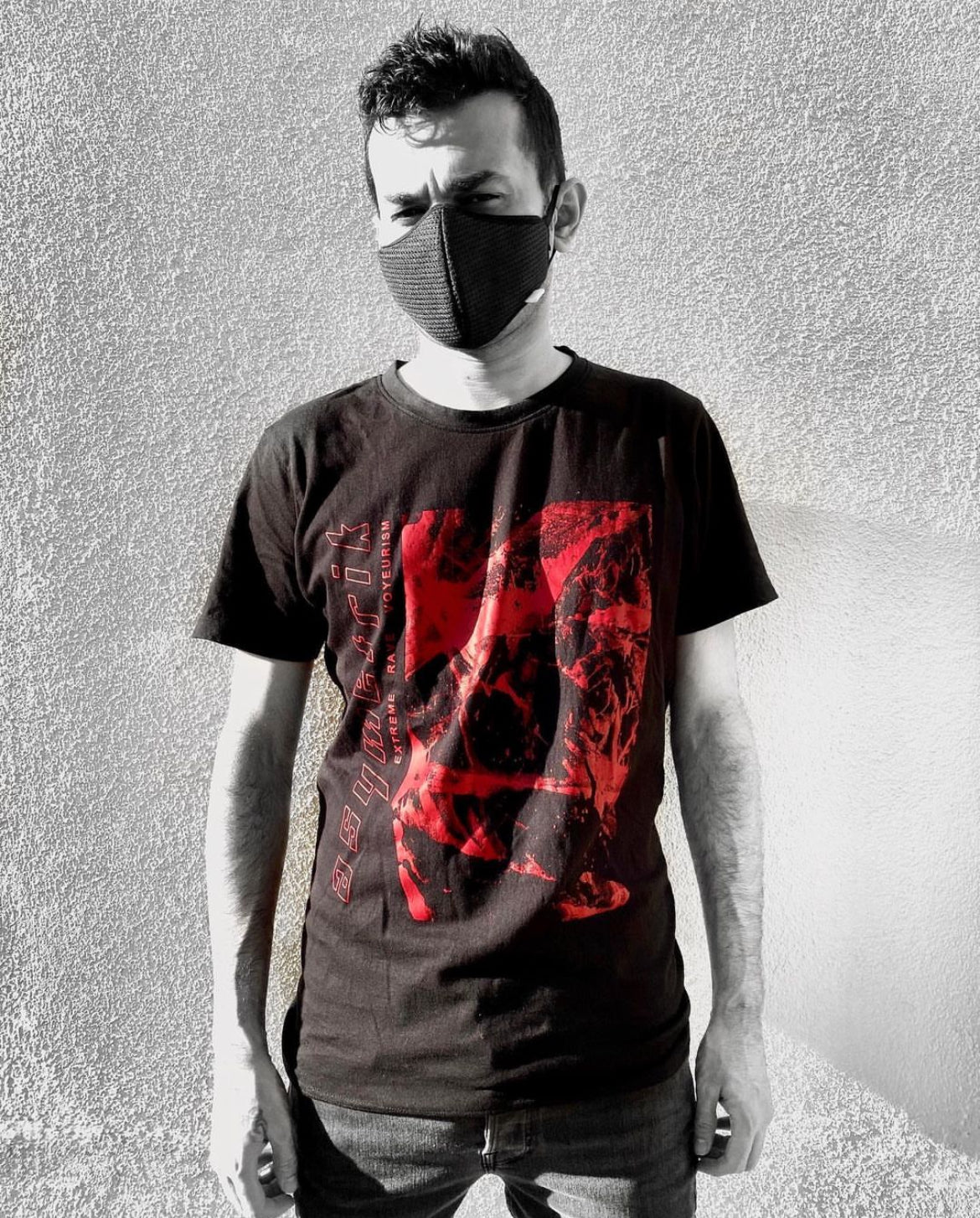 He took photos of people dancing from his previous gigs and morphed them into sick designs for tees.